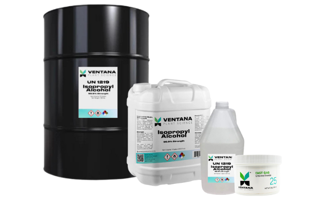 Maintain a pristine growing environment with Ventana Plant Science’s comprehensive Cleaning and Sanitation products. Our collection features powerful solutions like Chlorine Dioxide fast gas fumigation methods for advanced deodorizing and effective pathogen control, along with premium-grade Isopropyl Alcohol (iso) for thorough surface sanitation. Designed to meet the high standards of commercial growers, these products help prevent diseases, eliminate pests, and keep your cultivation space safe, clean, and highly productive.